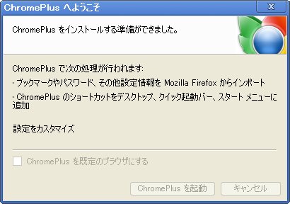[ ChromePlusを起動 ]をクリックすると自動的に