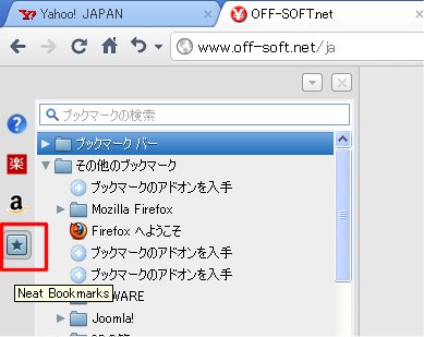 また、サイドバーにブックマークを表示する場合は、画面左上の[Neat BookMark ]ボタンをクリックします。